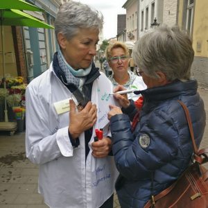 Anfangs teils überrascht, war das Echo der Befragten durchweg positiv. Es kamen viele interessante Gespräche zustande. Zusammenfassend wurde diese Aktion sehr begrüßt, denn tatsächlich wurde festgestellt, dass man sich mit dem eigenen Tod bis dato gar nicht auseinandergesetzt habe. Zufrieden mit den Resultaten wird der Arbeitskreis die gesammelten Eindrücke im Freundesbrief verarbeiten. Man darf gespannt sein.